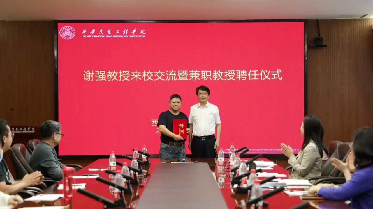 学校聘请谢强教授为西安交通工程学院客座教授,曹校长为谢教授颁发聘书。