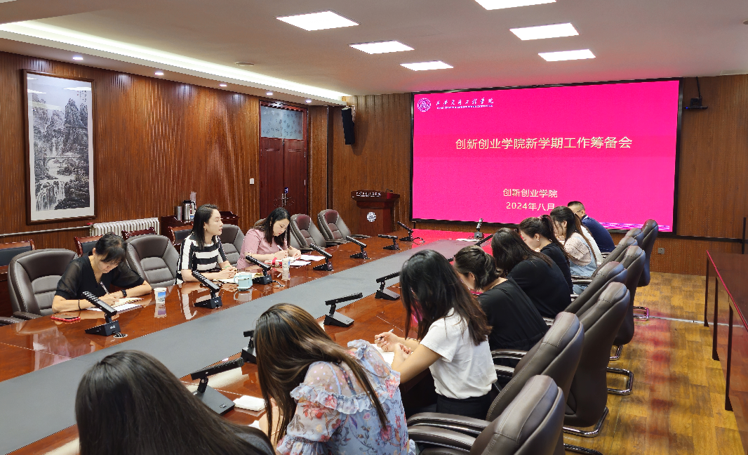 2024年8月22日,创新创业学院全体教职工在第一会议室召开新学期工作安排会议,布置本学期创新创业学院重点工作。会议由学院副院长屈茹主持。